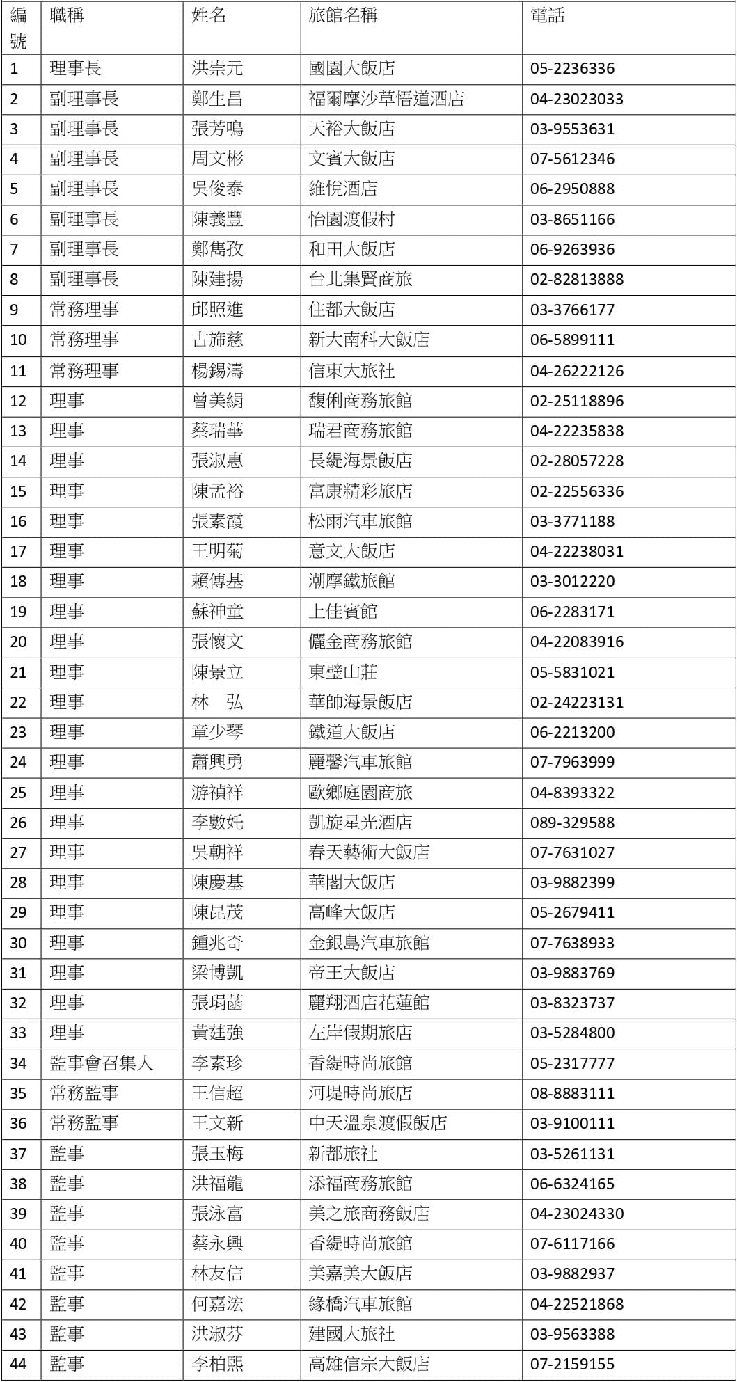 理監事名錄